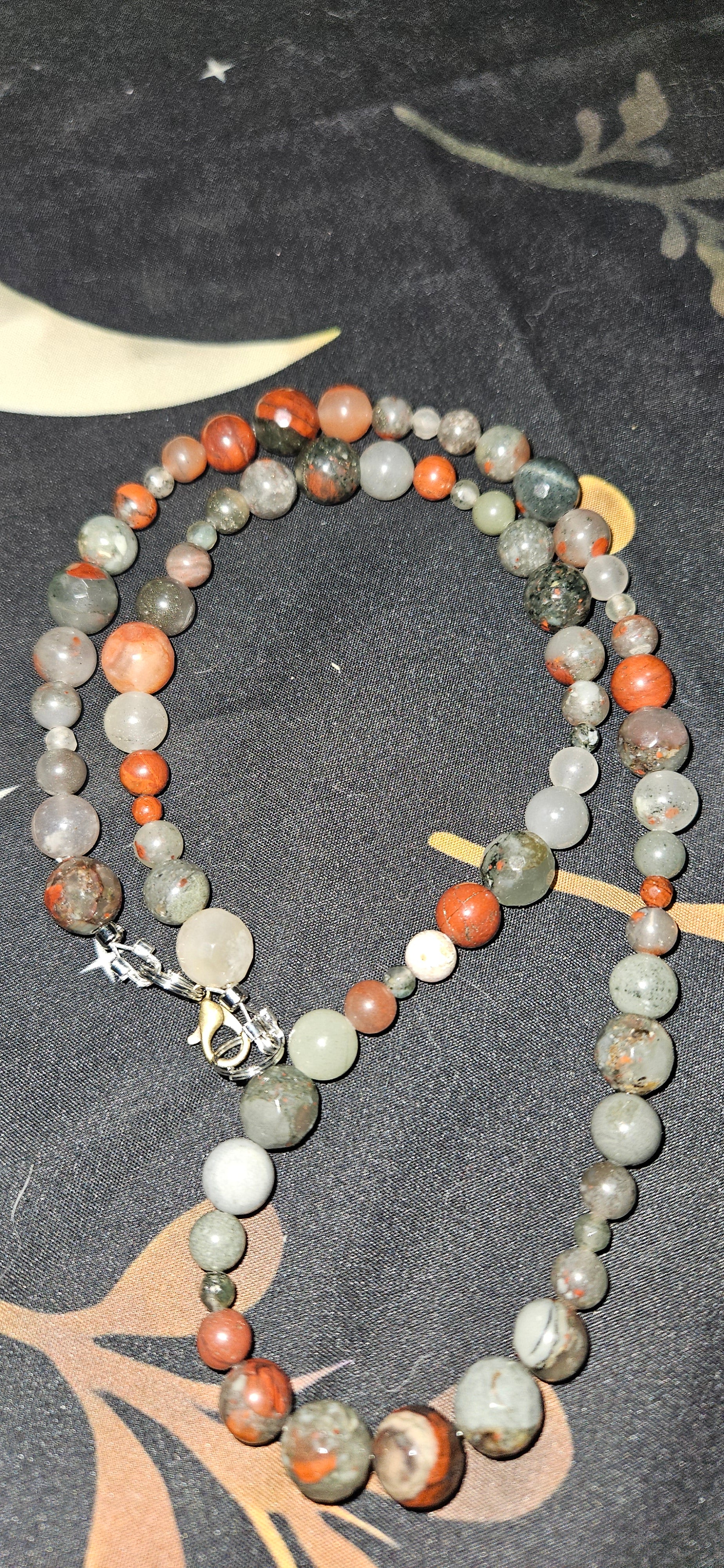 ❤️🔥 African Bloodstone Faceted Beaded Necklace – Courage, Vitality & Grounding Energy (10mm, 8mm, 6mm & 4mm Beads)
