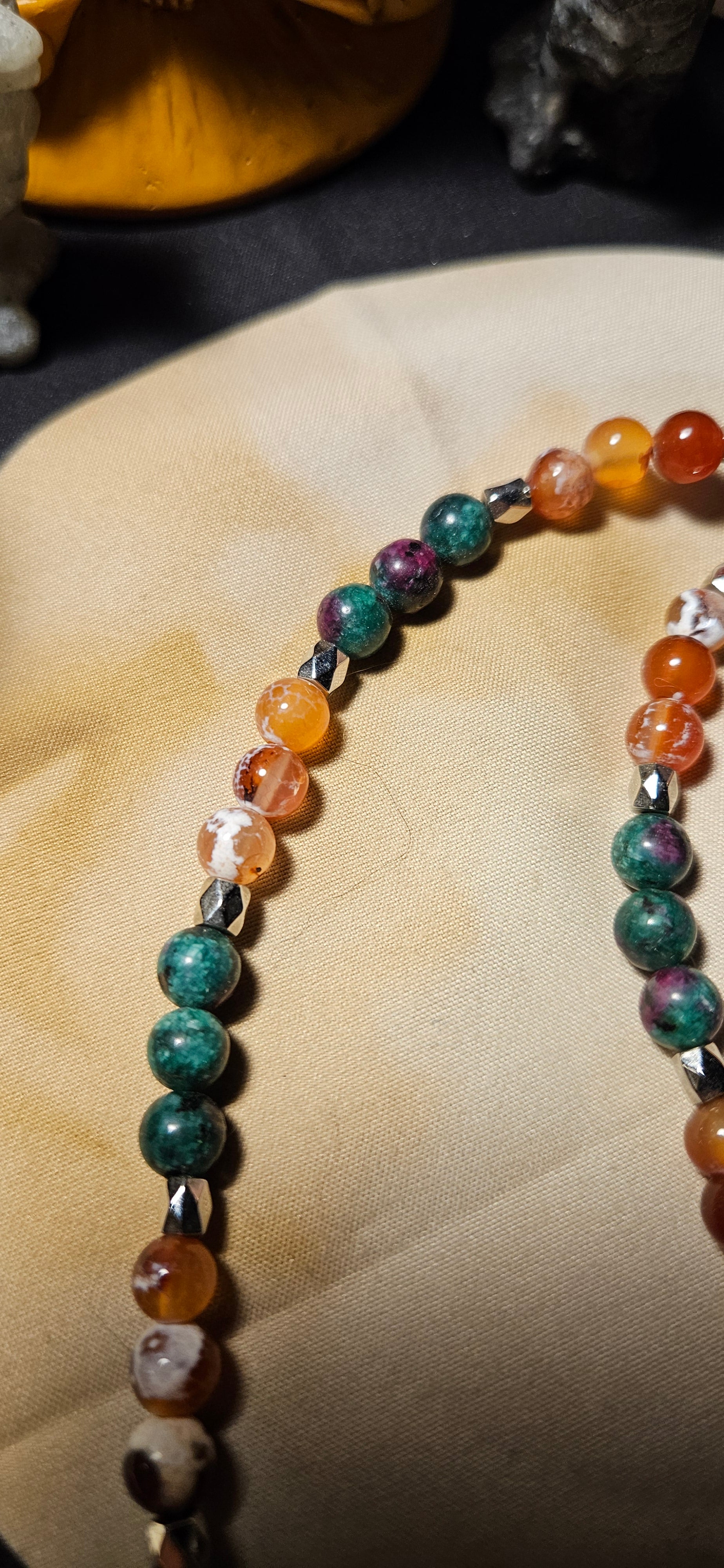 Carnelian, Citrine, Epidote, with Blue Dragonfly charm necklace
