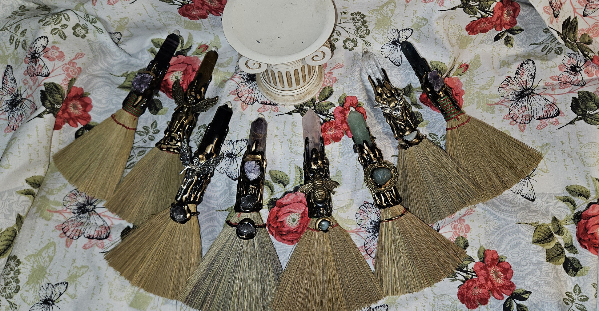 A tool of beauty and power — combining the ancient symbolism of the broom with the healing energy of crystals.