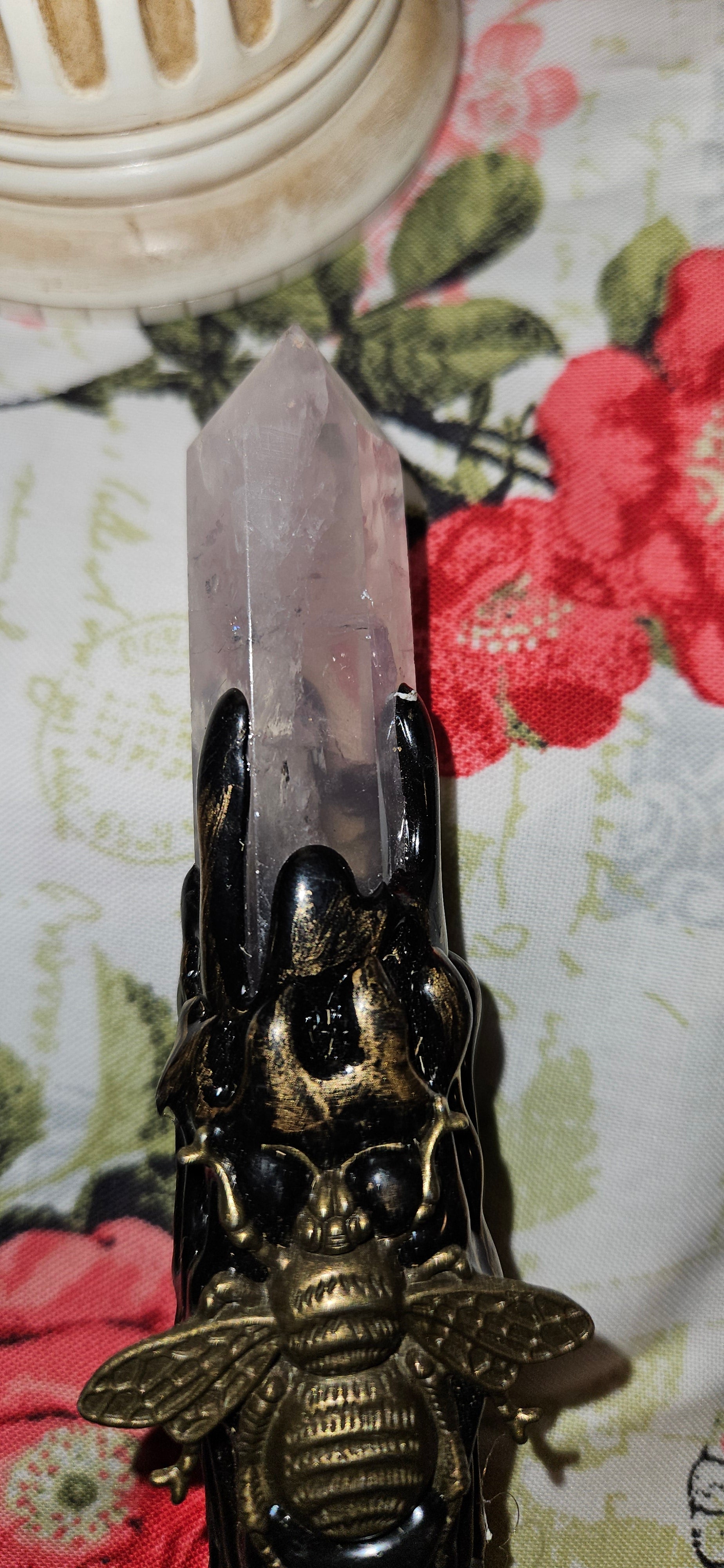 Handcrafted resin broom with natural crystal point tip