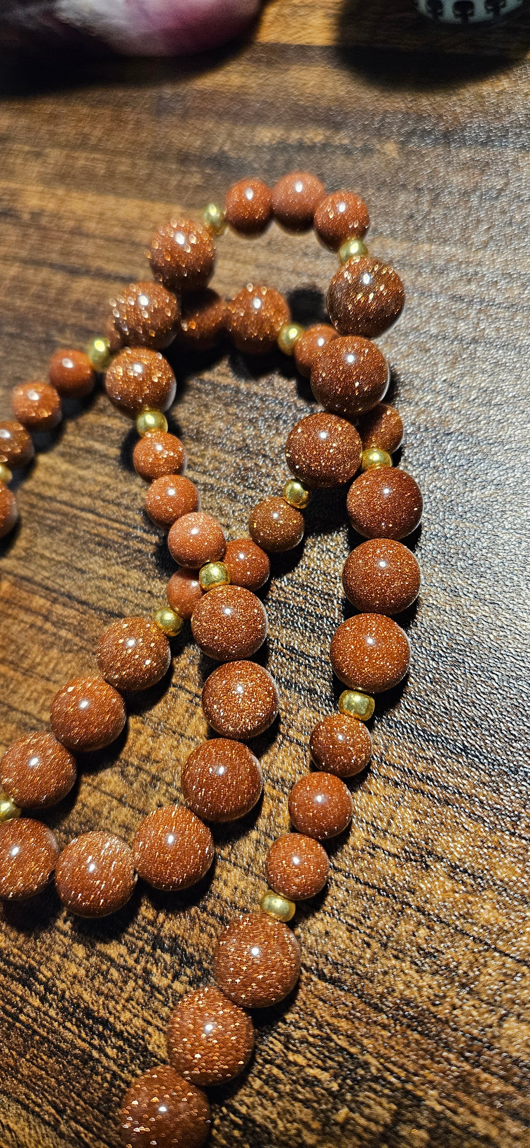 Each bead reflects flecks of golden sparkle that catch the light beautifully, symbolizing vitality and the energy of the sun. This necklace balances grounding energy with inspiration, making it perfect for those who pursue their dreams with courage and joy.