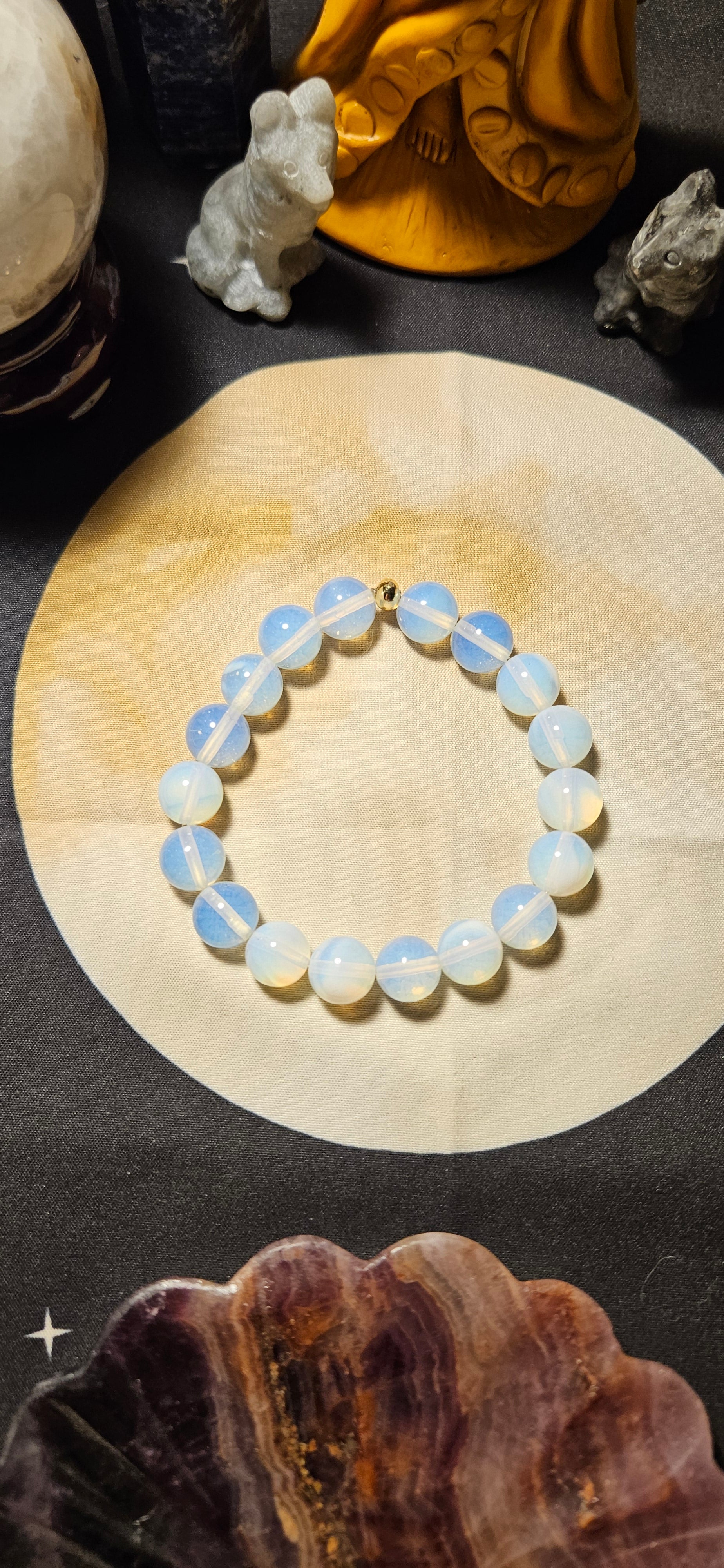 Opalite is associated with enhancing spiritual communication, boosting self-esteem and facilitating emotional stability. Opalite can help strengthen one's connection to the spirit world, and is considered a stone of transformation, helping individuals overcome fears, embrace change, and navigate life's transitions. Available in 10mm, 8mm, and 6mm sized beads.