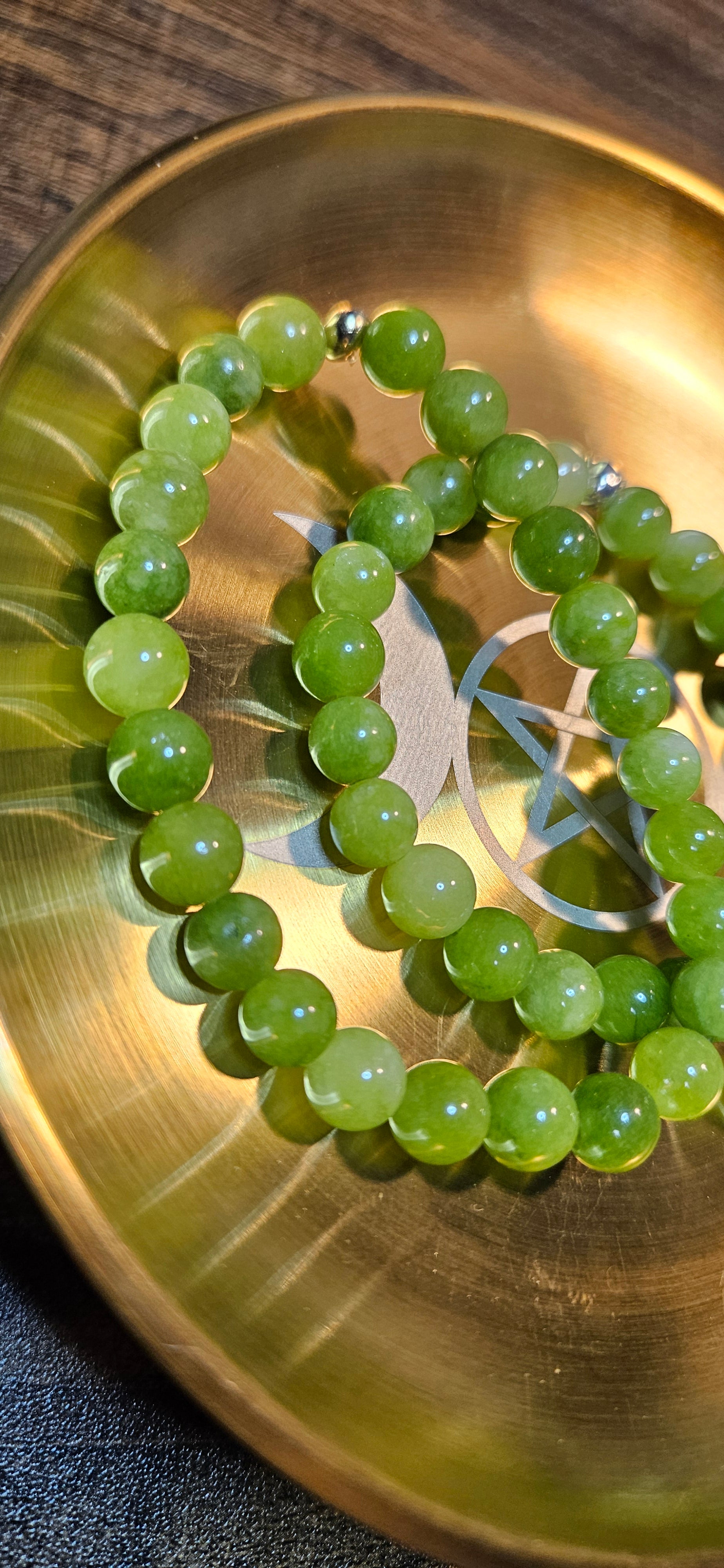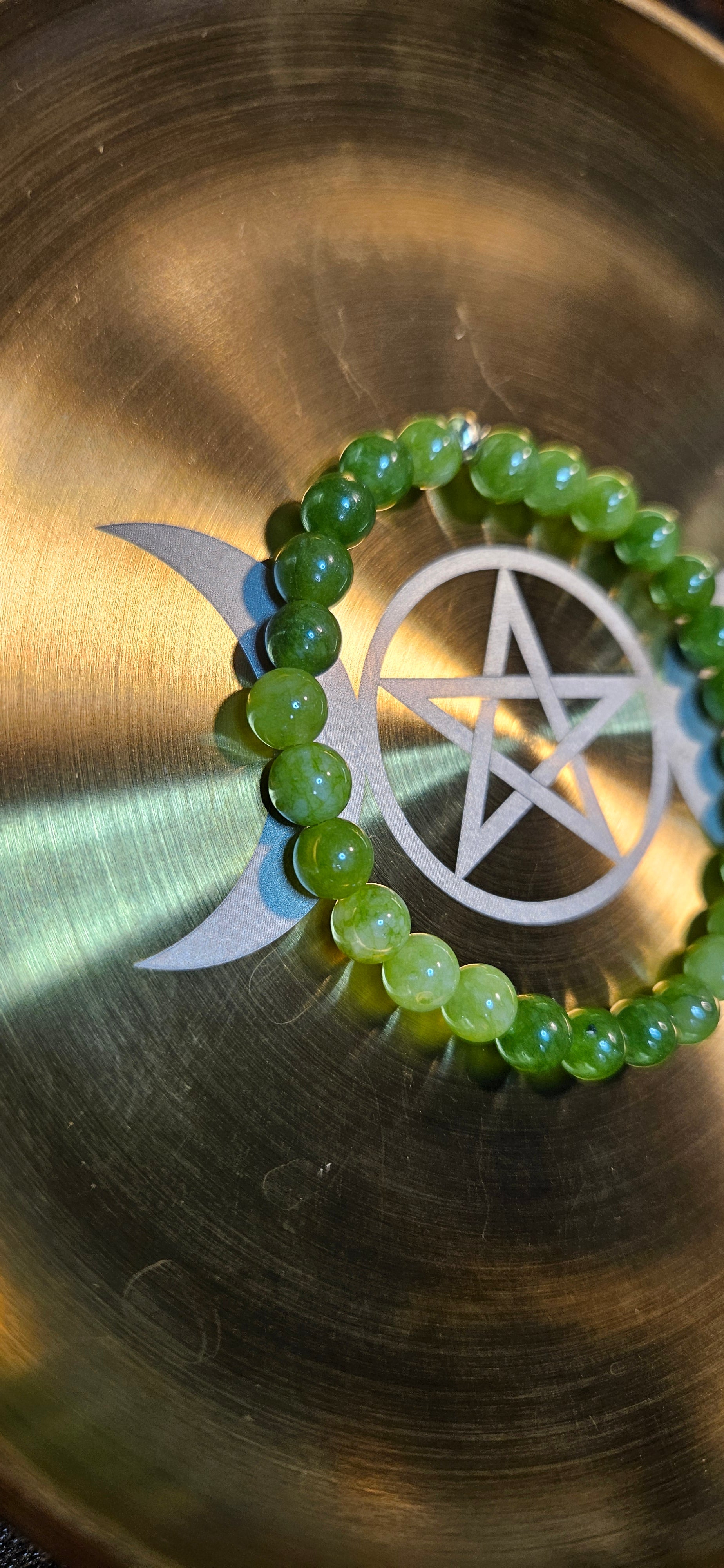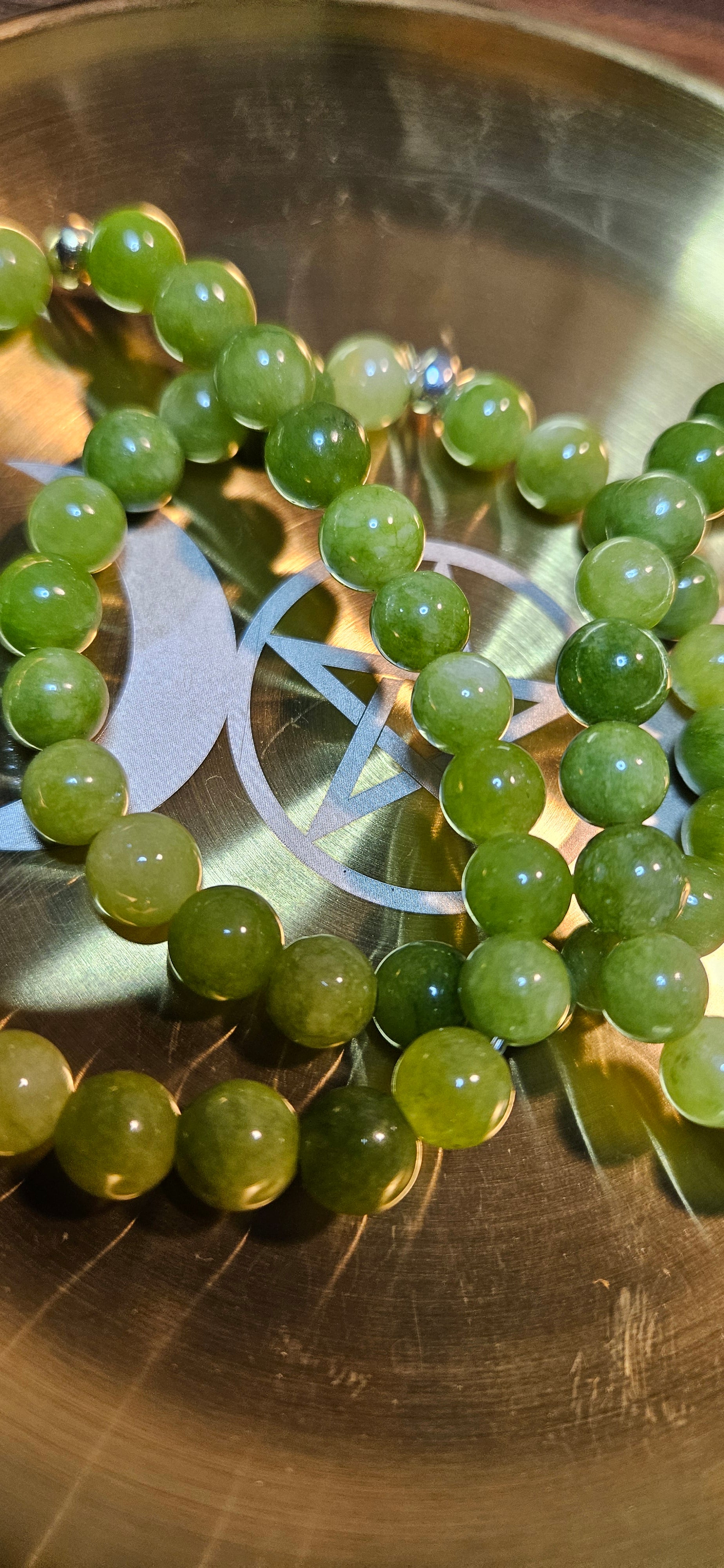Each bead naturally unique with a soft green glow