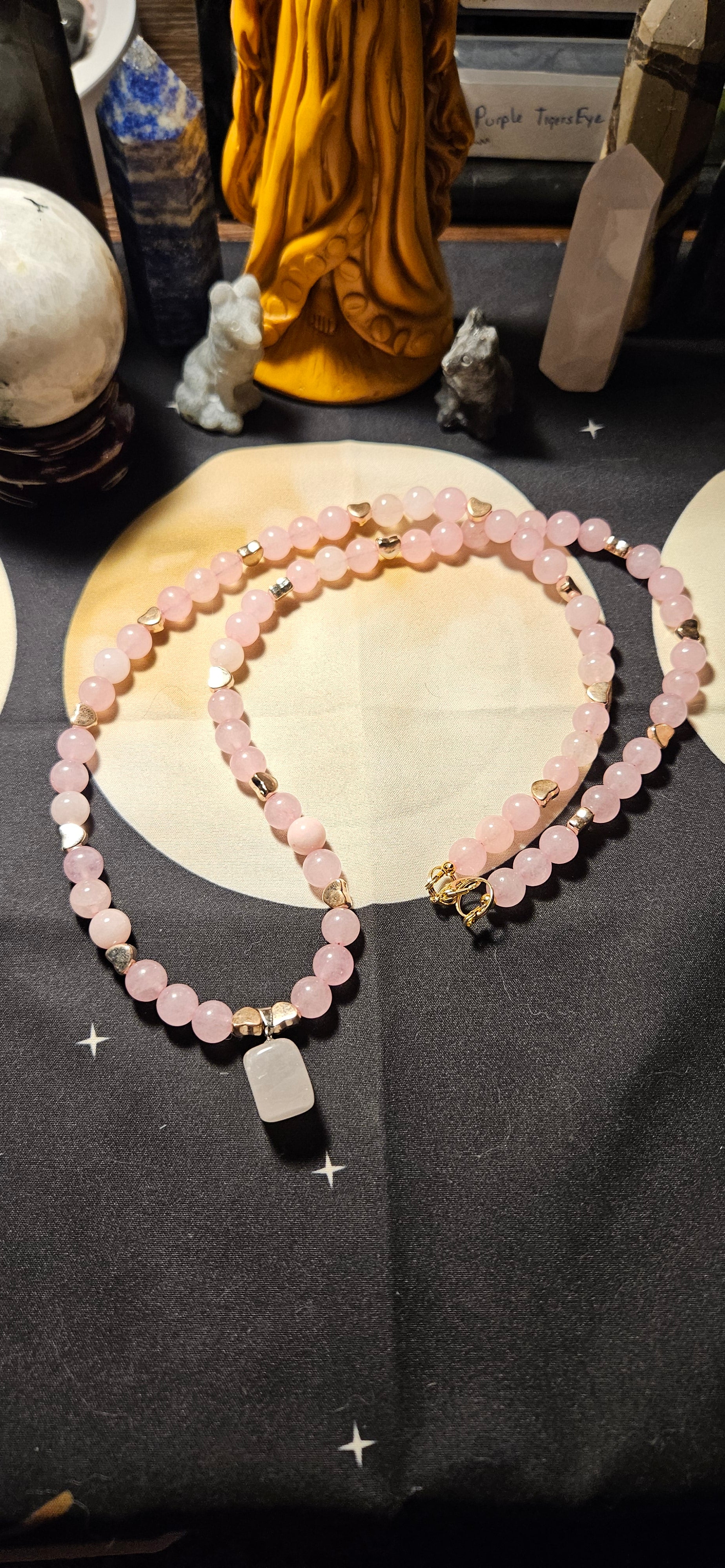 Rose Quartz with heart spacers and Rose Quartz tumbled pendant