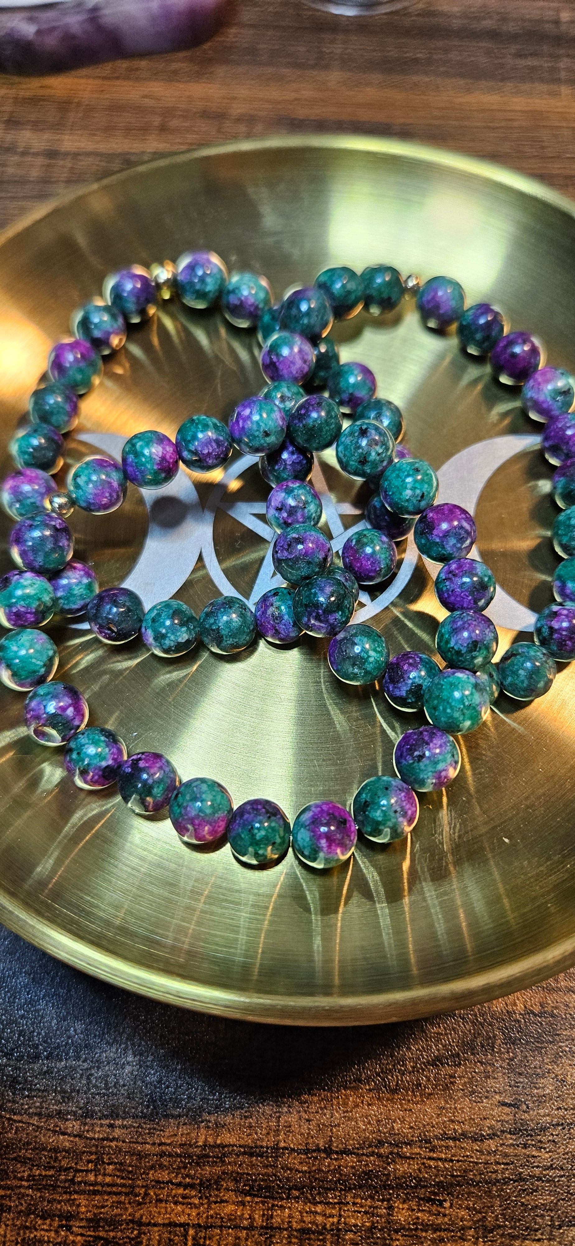 Awaken your heart and spirit with our stunning Ruby Zoisite Bracelet, handcrafted from genuine natural stones. This unique crystal combines the fiery energy of Ruby with the grounding, regenerative properties of Zoisite, creating a harmonious balance of passion and calm.