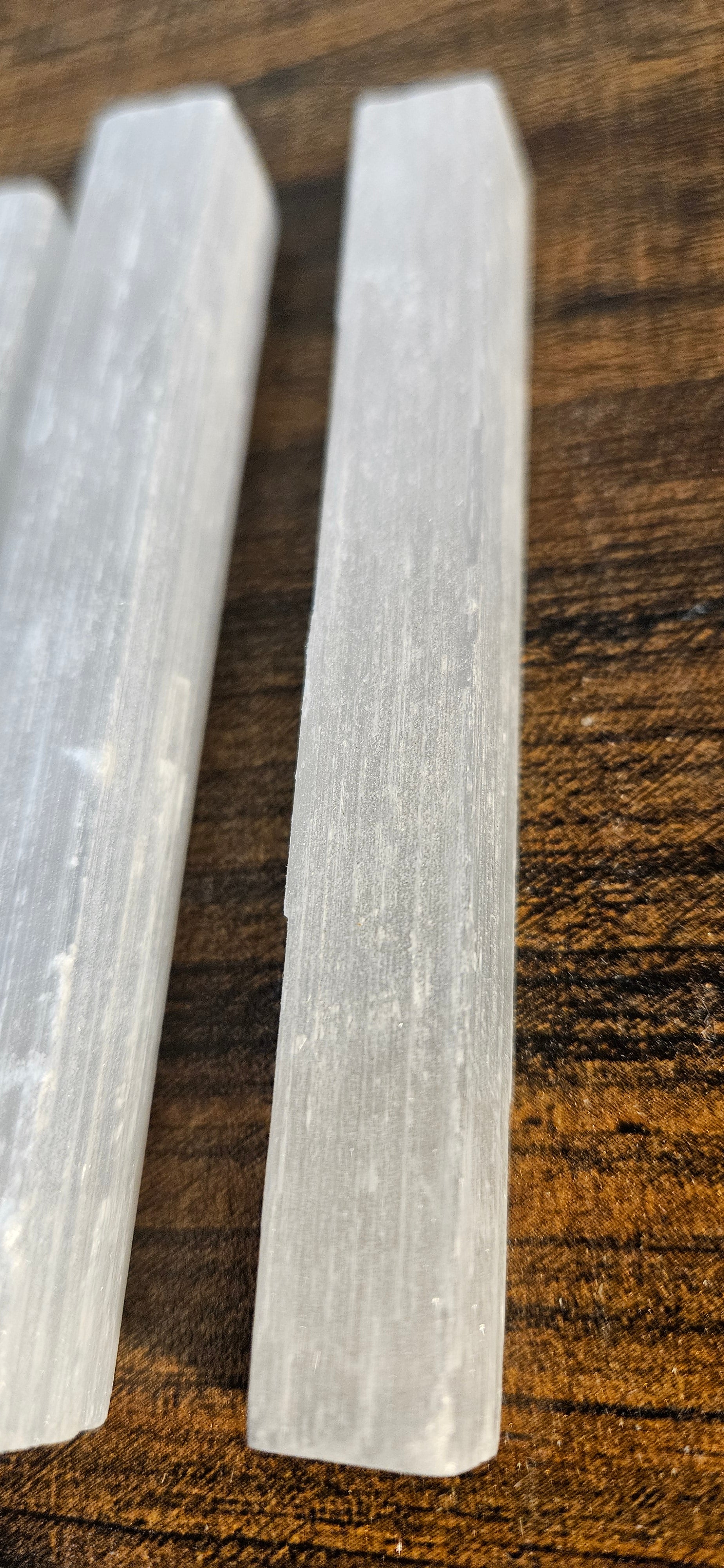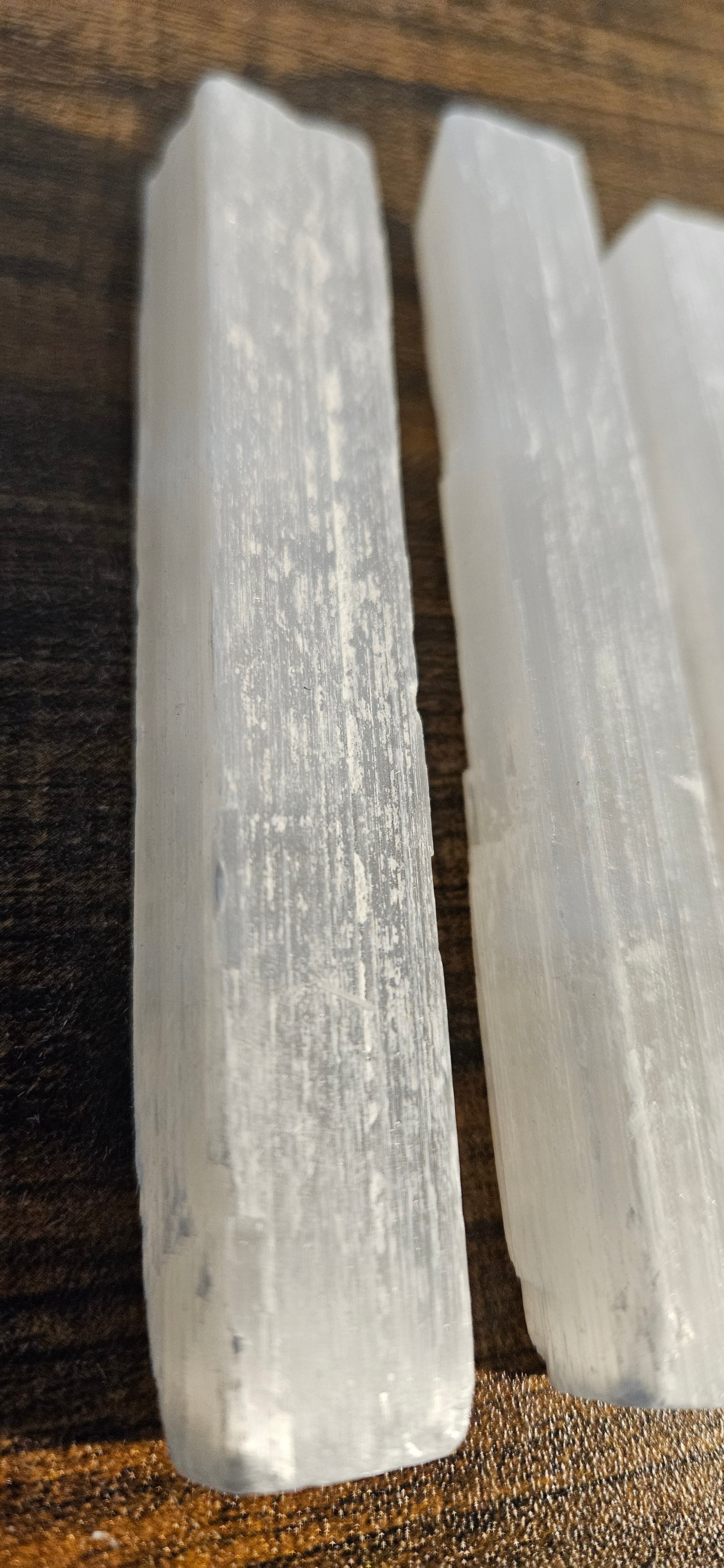 🤍 Product Title: Satin Spar Selenite Sticks – Cleansing, Clarity & Energy Renewal (4")