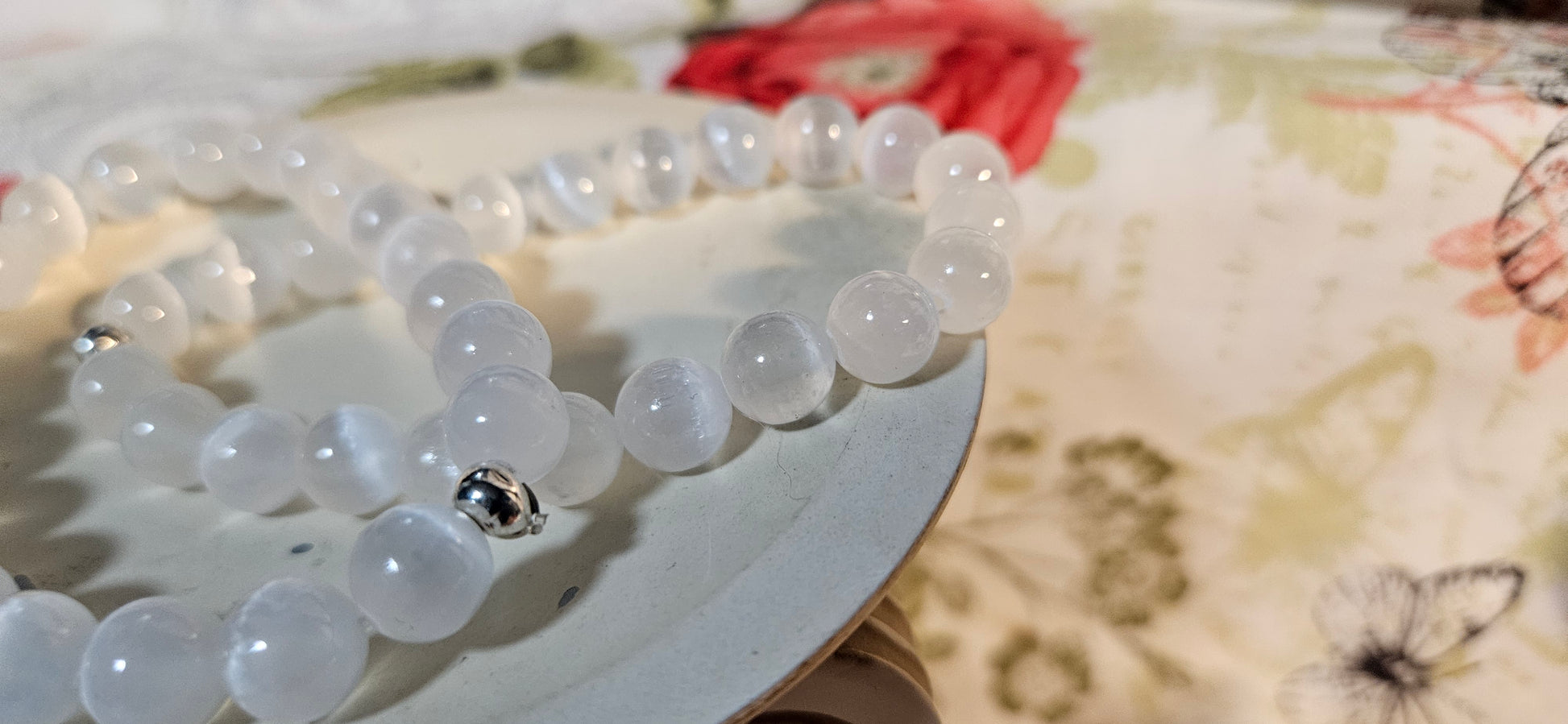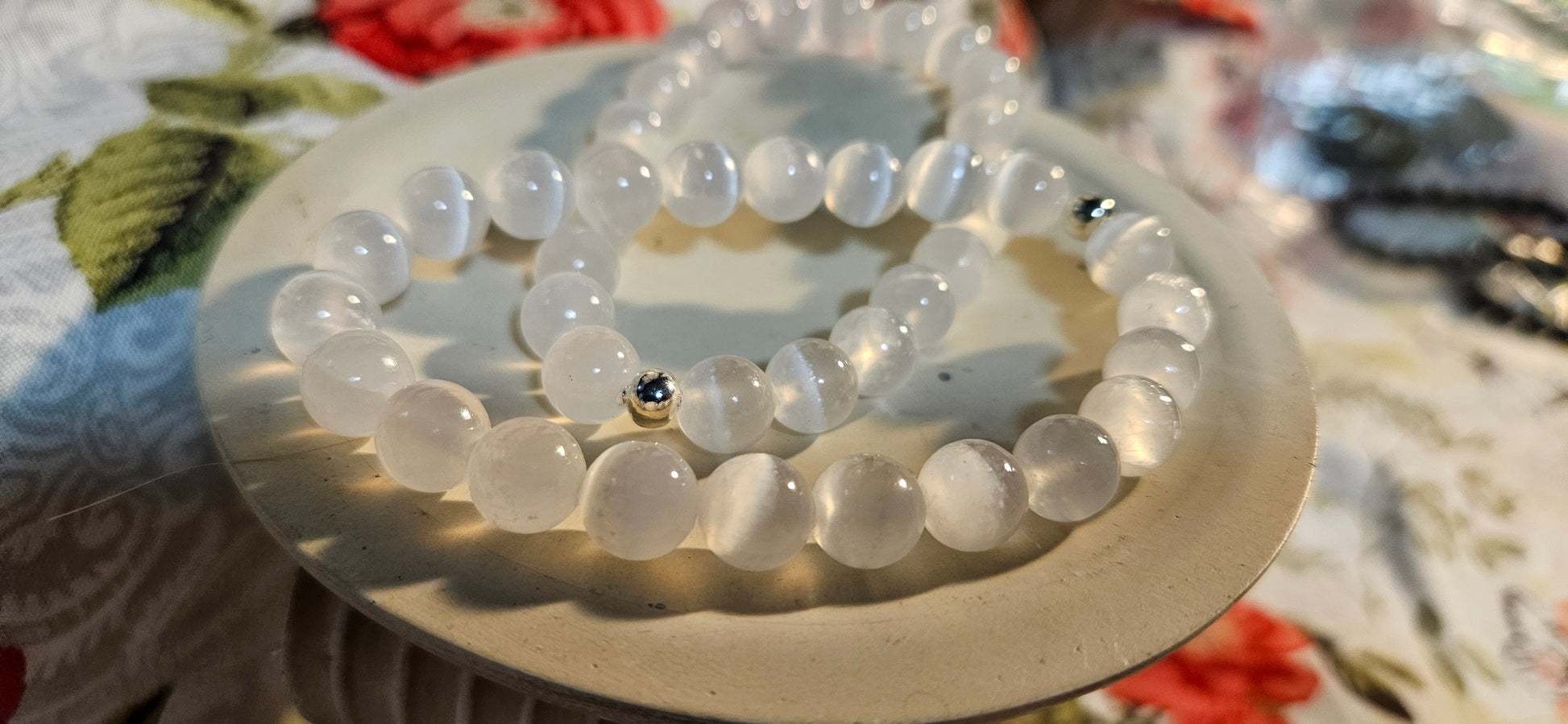 🤍 Satin Spar Selenite Beaded Bracelet – Cleansing, Clarity & Peace (8mm Beads for 7–8" Wrist)