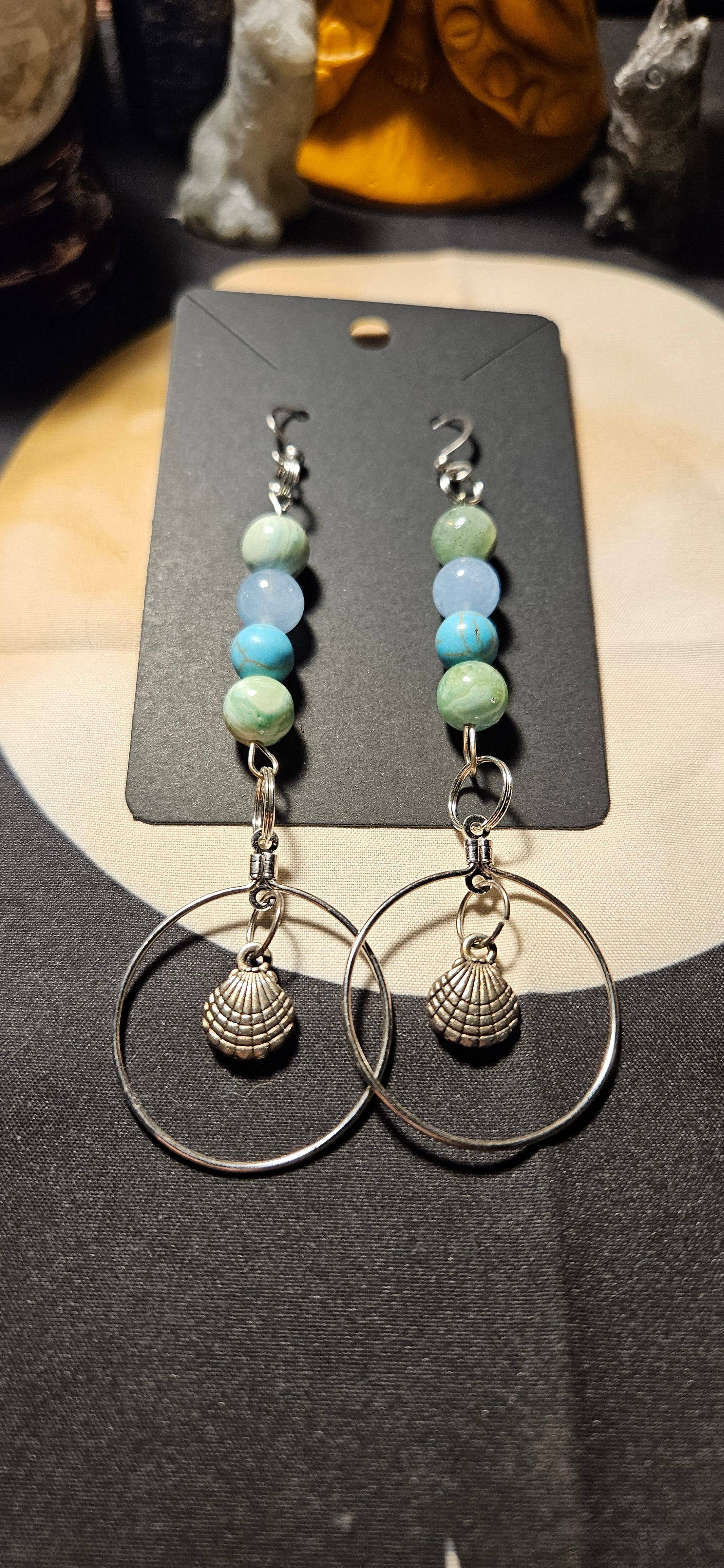 Variscite, Aquamarine, Turquoise Seashell Earrings