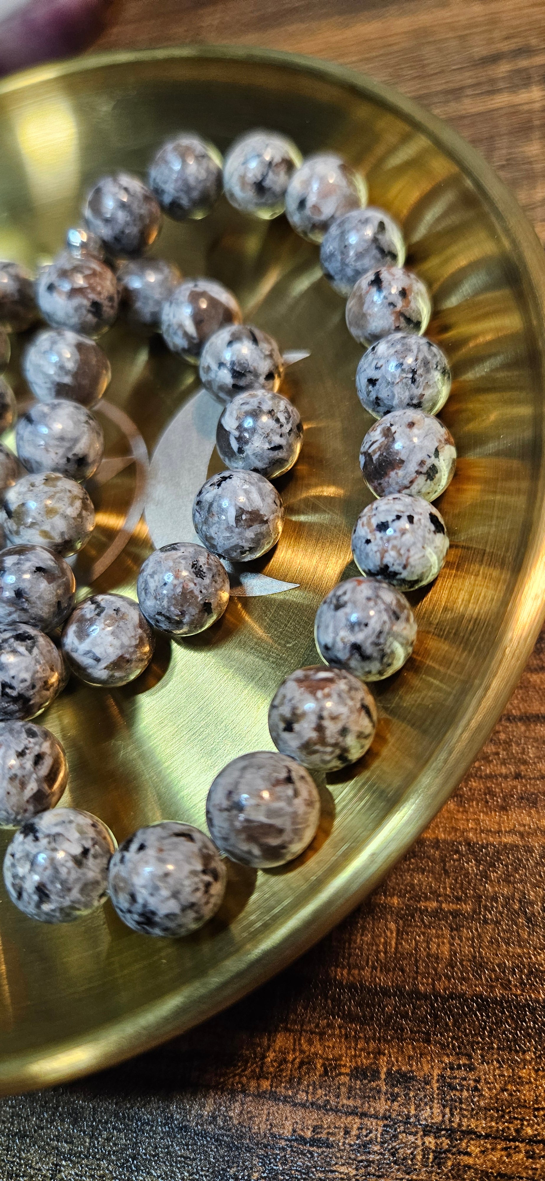 Illuminate your energy with our Yooperlite Bracelet, a truly unique crystal that glows with fiery light under UV illumination. Composed of syenite infused with fluorescent sodalite, Yooperlite symbolizes inner strength, truth, and emotional release.